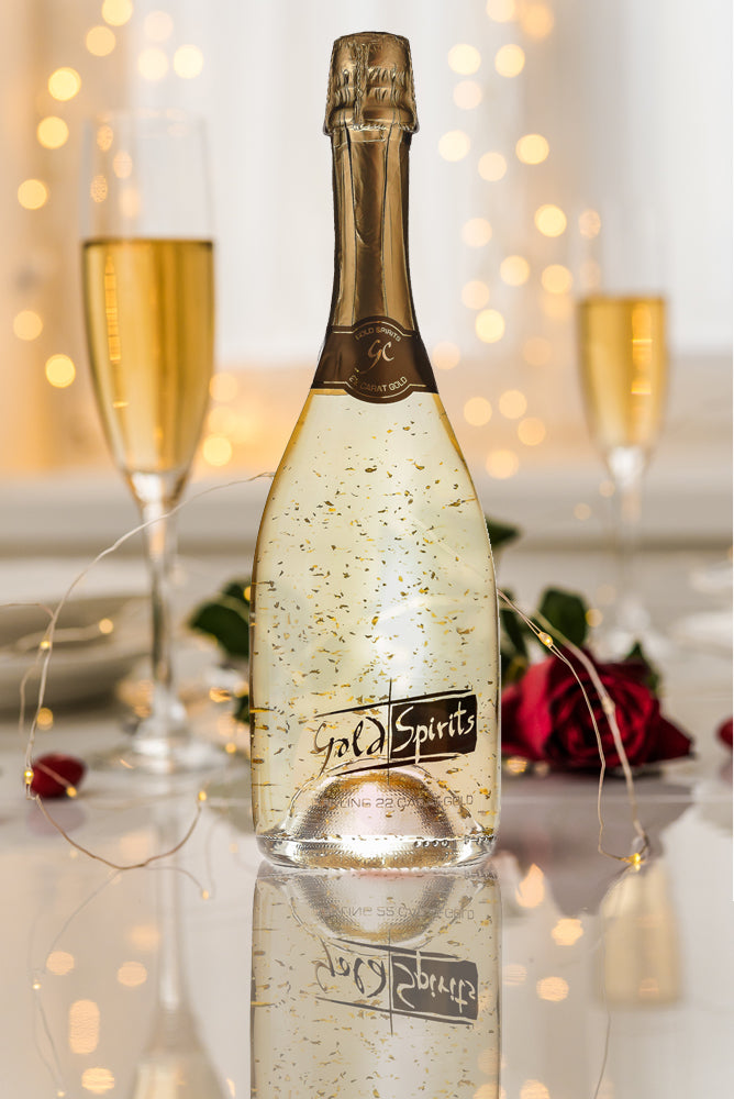 The Sparkling Gold Cuvee Original is a fine dry wine enhanced by a dash of liqueur with edible 22 carat gold flakes.