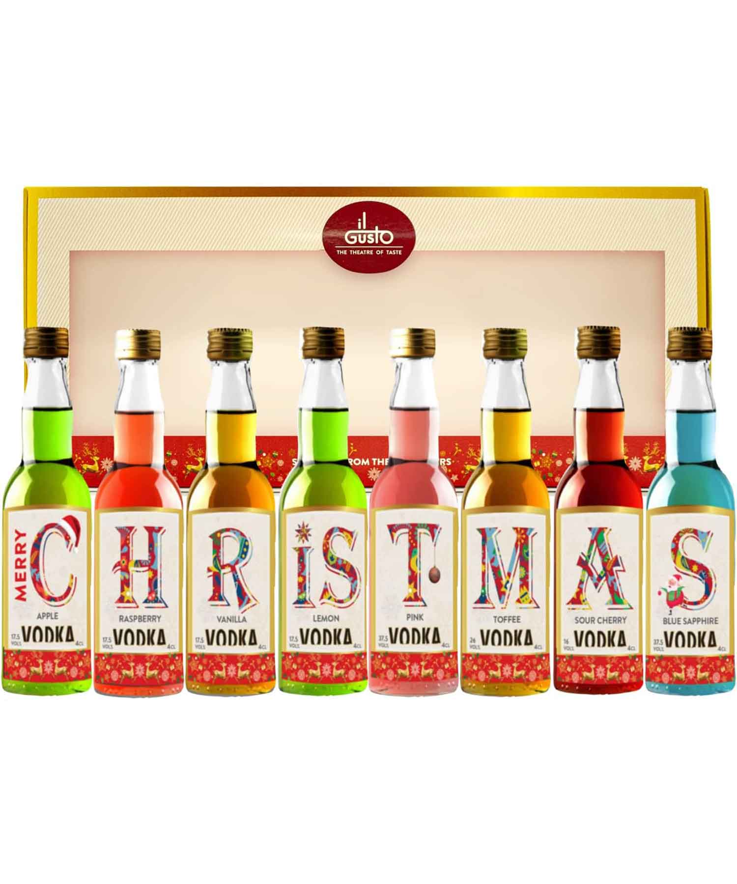Eight bottles of 40ml vodka, containing the following flavours: Eight 40ml bottles of premium vodka, containing each of the following, Sour