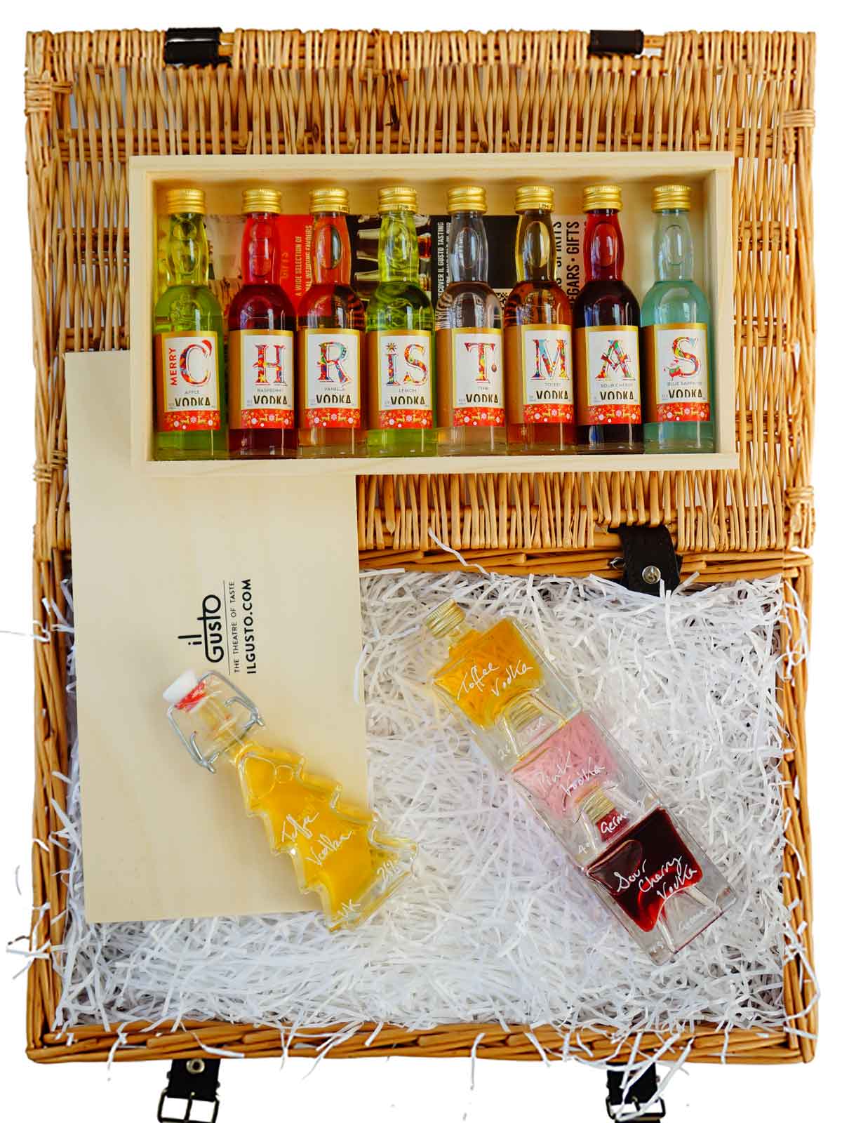 The Festive Vodka Indulgence Hamper is the perfect gift for anyone who loves to explore unique flavors and indulge in festive spirits. Whether shared with friends or kept as a personal treat, this hamper guarantees a merry and flavorful holiday season!