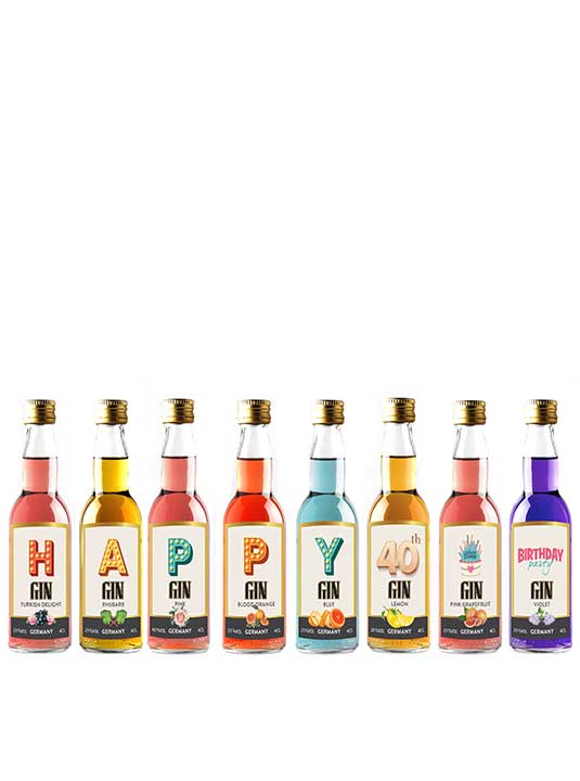 This miniature gin set is beautifully presented in a luxury wooden box or Printed Gift Box – containing 8 different flavours of fruit-based gin liqueurs. It is the perfect gift for a cocktail connoisseur and a great way to update your drinks cabinet. The premium gins come in a range of delicious flavours – from classic styles such as rhubarb and elderflower gin to quirky creations such as gin lime basil and pink grapefruit. Whether you choose to mix up a delicious cocktail or enjoy the smooth refined taste of a high-quality gin on the rocks – these fruity flavours will bring something extra special to any occasion. Cocktail suggestions: Turkish Delight Gin & Tonic– 2 parts Turkish Delight Gin, 2 parts lemonade, 1 part prosecco and serve in a large chilled wine glass.