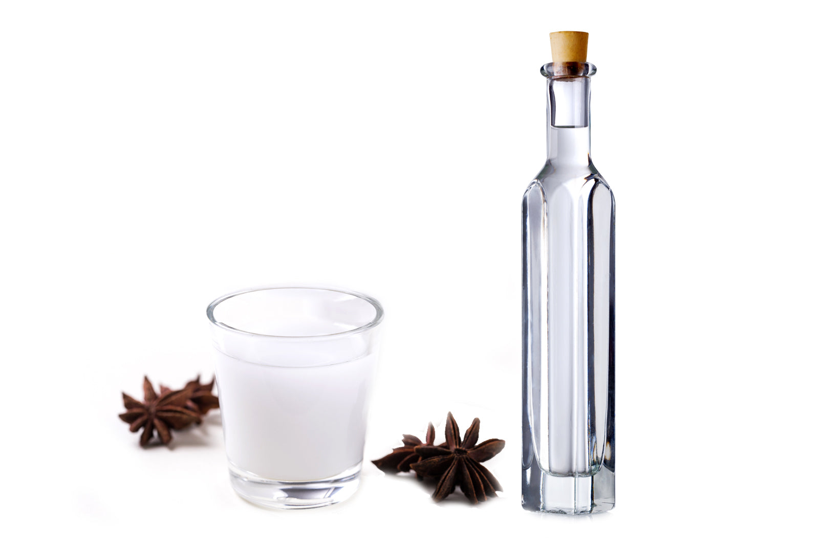 To drink ouzo like a pro, you'll need a small glass and a couple of ice cubes. Pour the ouzo over the ice, and watch as the anise reacts to the cold and starts to turn a little cloudy. If you don't have ice - you can add a splash of cold water to neat ouzo instead.