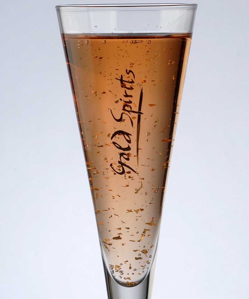 The Sparkling Gold Cuvee Rose is a fine dry wine enhanced by a dash of liqueur with edible 22 carat gold flakes.