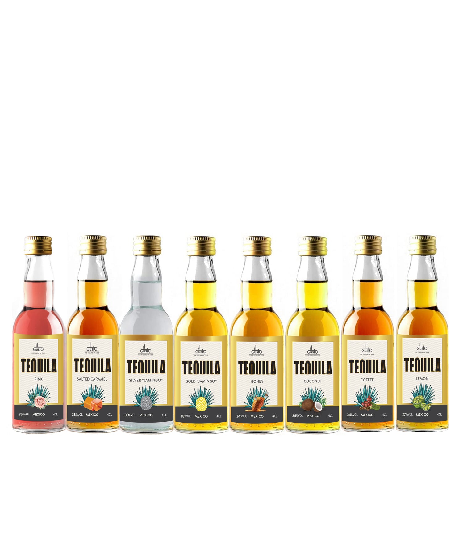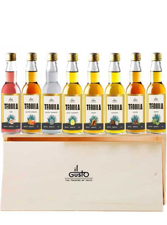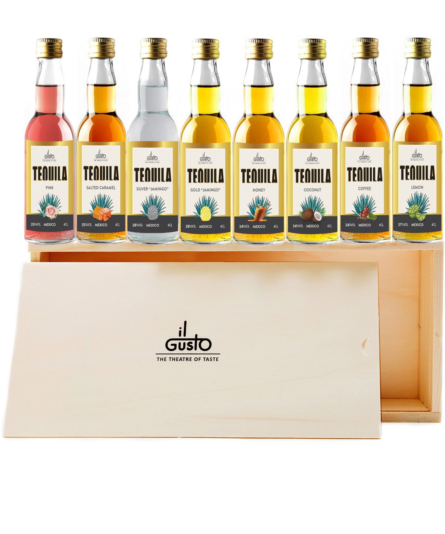 Packed full of deliciously flavoured spirits – this gorgeous gift set is a tequila lover’s dream. These tasty tipples are all sourced directly from the producer meaning they are the highest possible quality – simply pour into a chilled glass and enjoy. If you’re feeling creative, why not mix some of the spirits together to create something completely new – perfect for the creative cocktail maker! Presented in a luxury wooden box, the bright colours of these beautiful glass bottles are a stunning addition to your cocktail cabinet and make the perfect gift. Miniature 40ml each - Tequila Gift Set * Accessories not included.